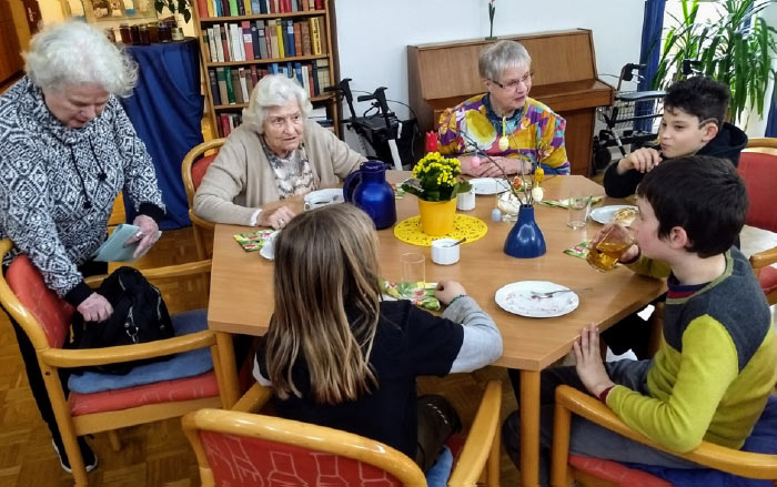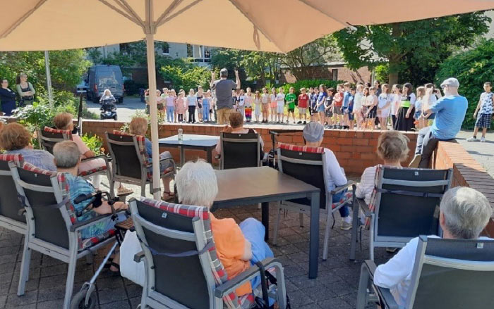 Kindergruppen besuchen Senioren im Wohnpark „Im Dahlacker“ (Betreutes Wohnen für Senioren, Im Dahlacker 8), um Freude zu schenken und generationsübergreifend Feste zu feiern sowie gemeinsame Zeit zu verbringen.