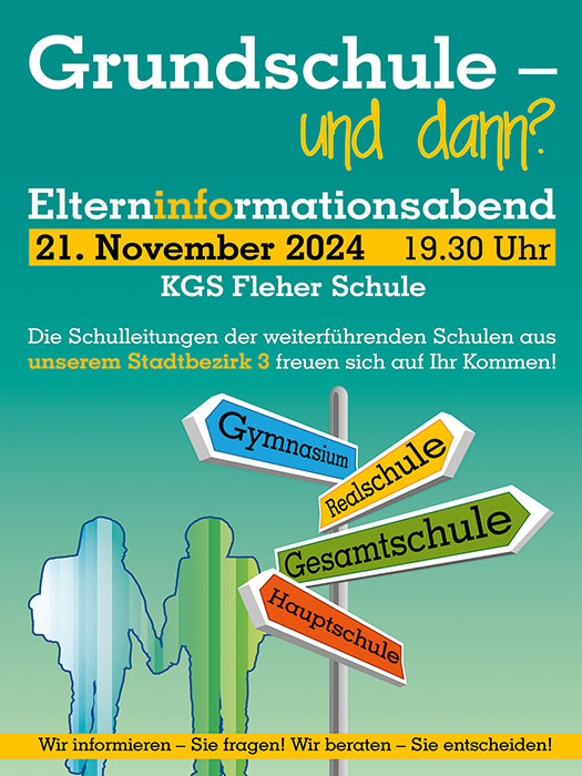 Außerdem wird jährlich ein gemeinsamer Elternabend zur Information über den Weg an die weiterführenden Schulen nach der Grundschulzeit vorbereitet und durchgeführt.